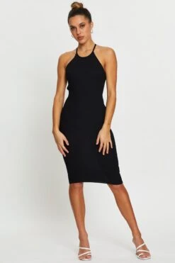 Features: Halter Neck, Cross Over Back, Bodycon Fit, Ribbed Knit
