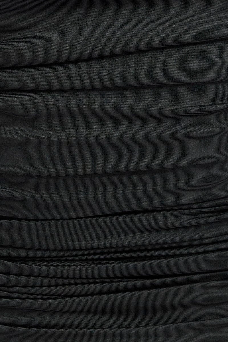 Black Bodycon Midi Dress Rose Strappy Rosette Gathered