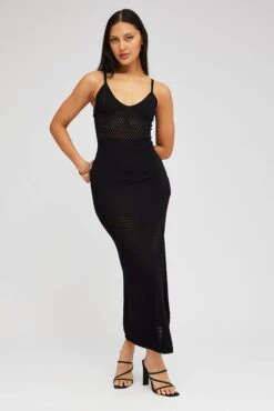 Be the first to review “Black Knit Dress Sleeveless V Neck Midi Mixed Crochet” Cancel reply