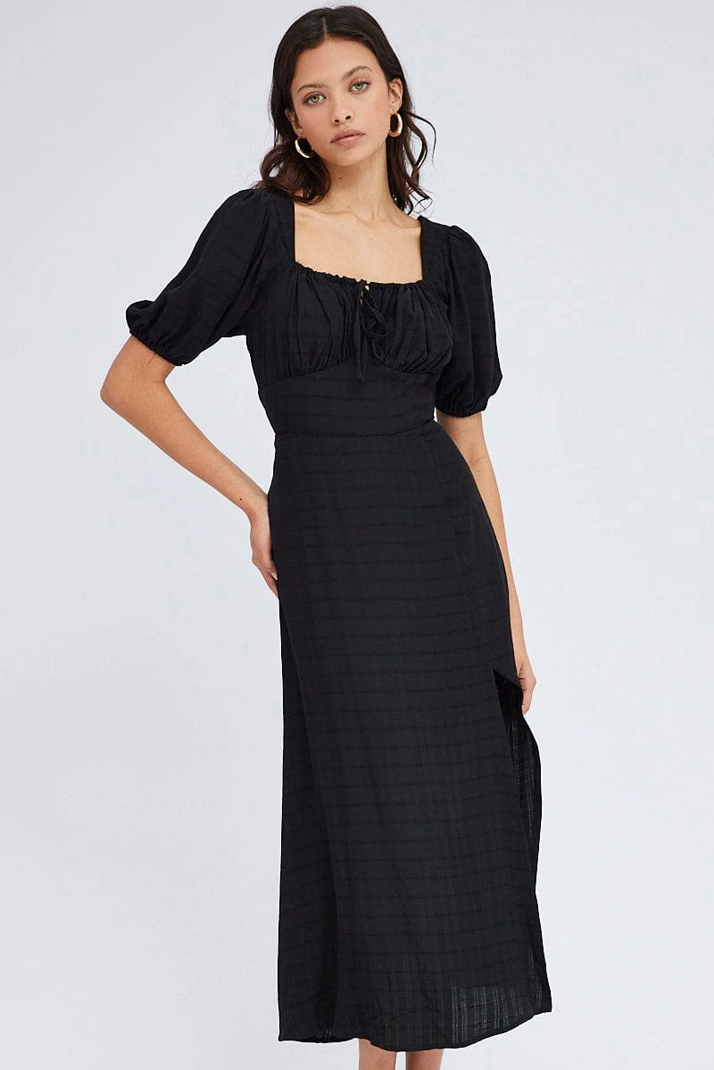 Be the first to review “Black Midi Dress Short Sleeve Ruched Bust” Cancel reply