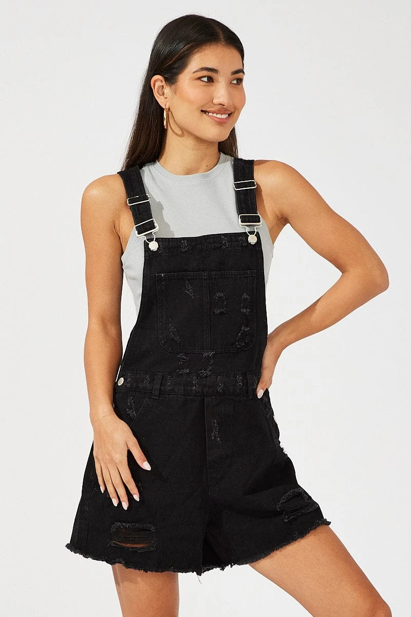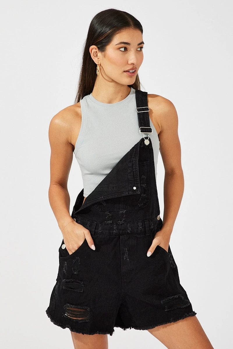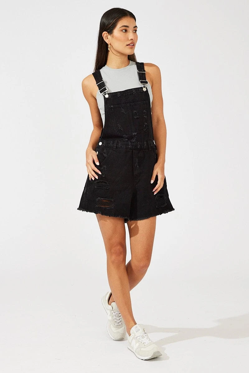 Black Short Overalls Ripped