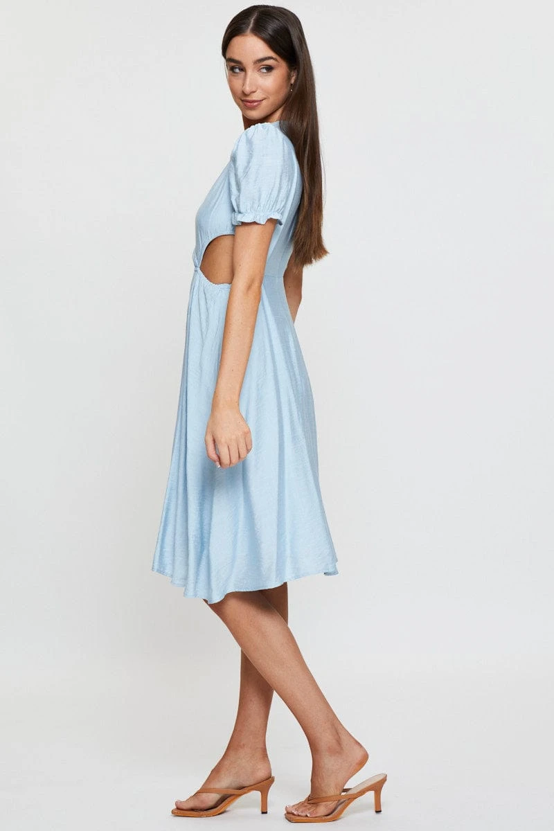 Features: Back Zipper, Puff Sleeves, Cut Out Detail, Midi Length