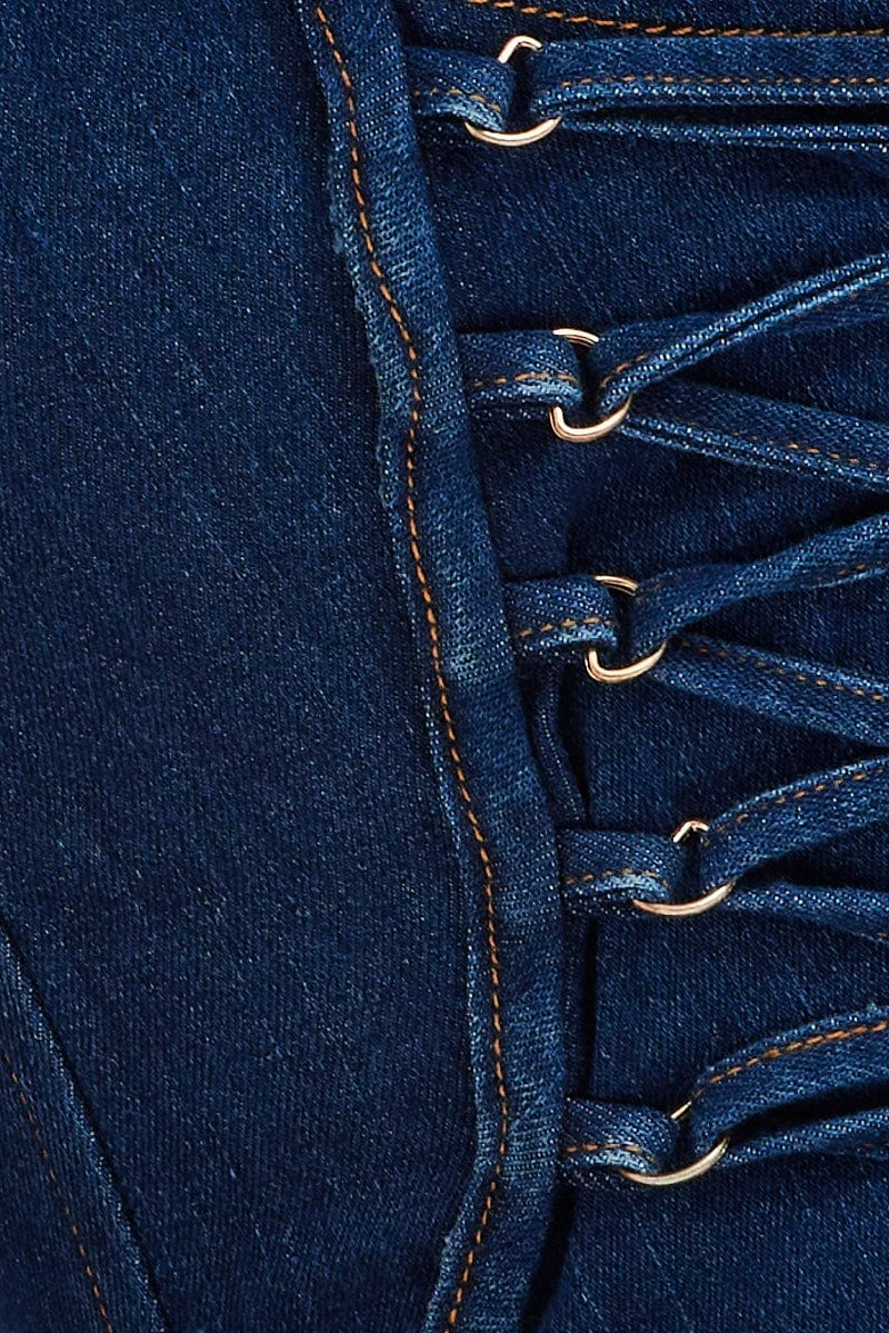 Denim Corset Crop Top Side Tie DetailsZip Back Denim