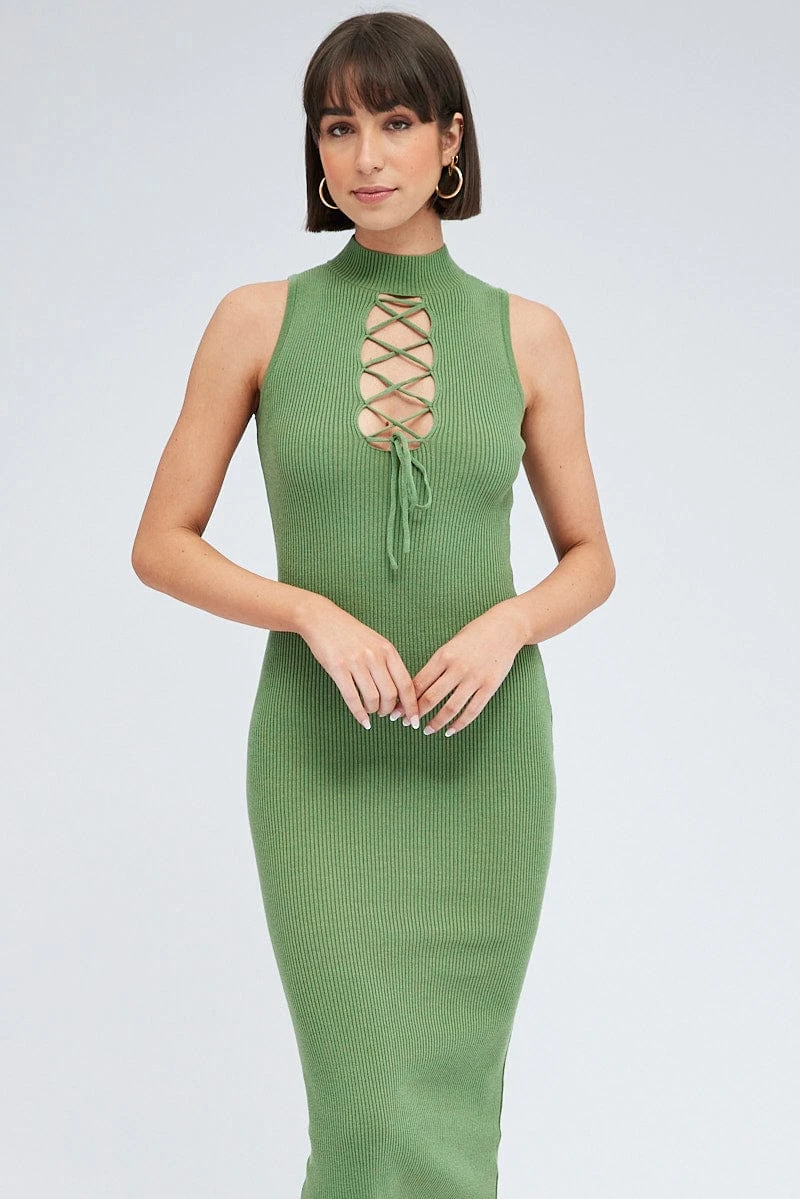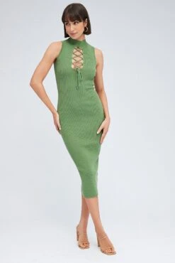Be the first to review “Green Knit Dress High Neck Sleeveless Midi” Cancel reply