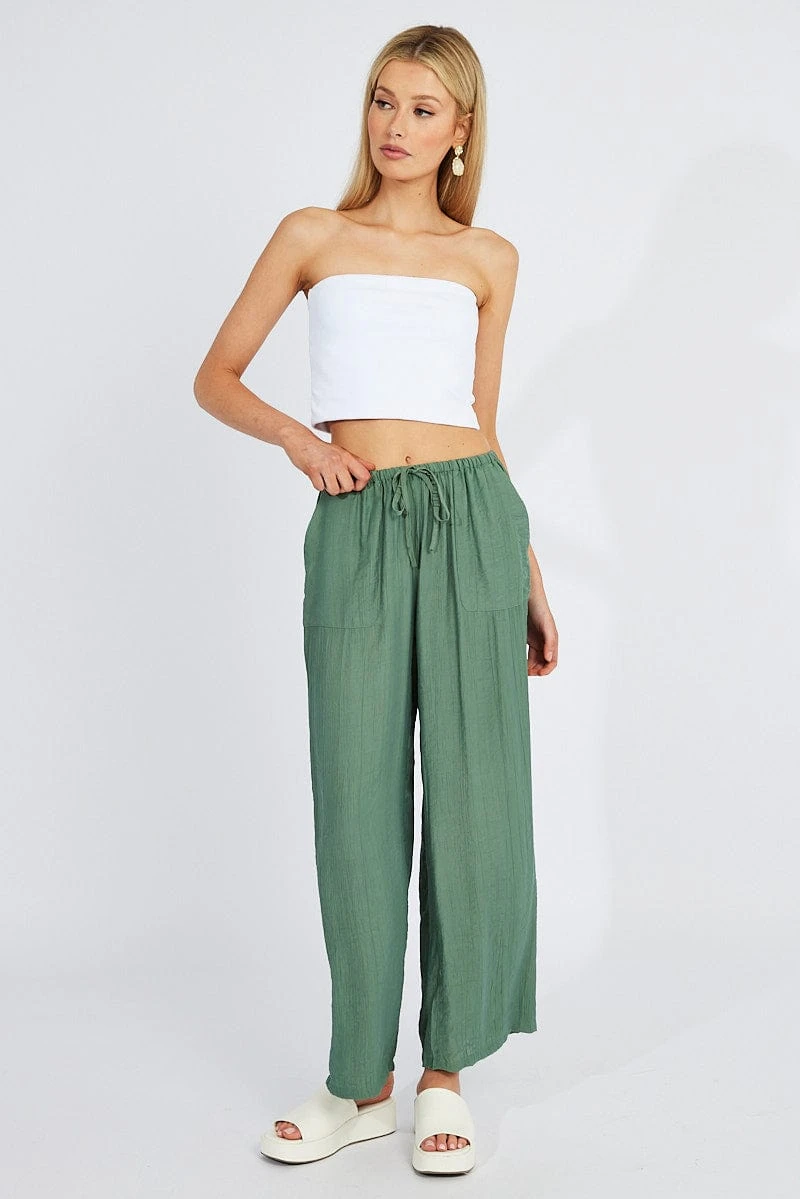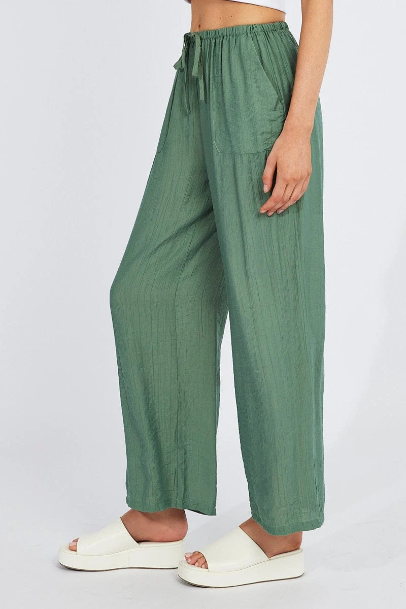 Green Wide Leg Pants Textured Fabric