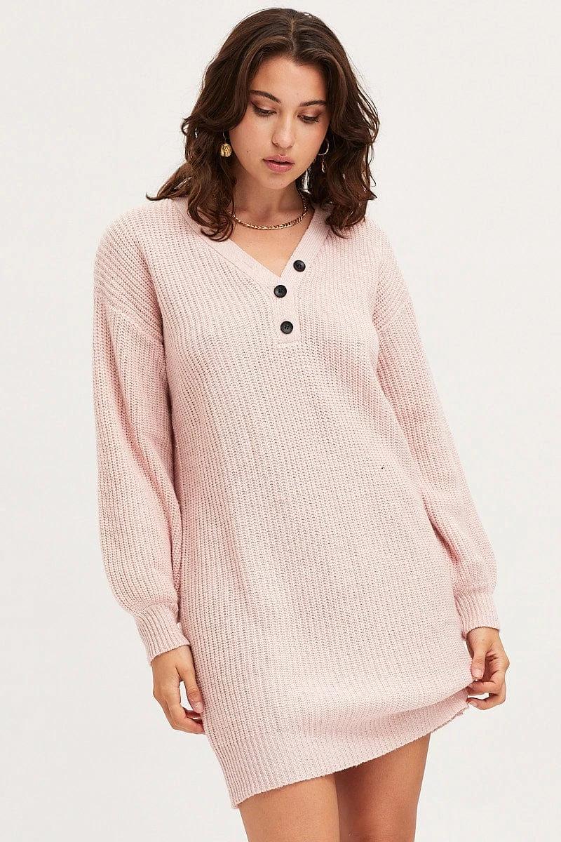 Features: Knit Fabric, Buttoned Neckline, Volume Sleeves, Drop Shoulder