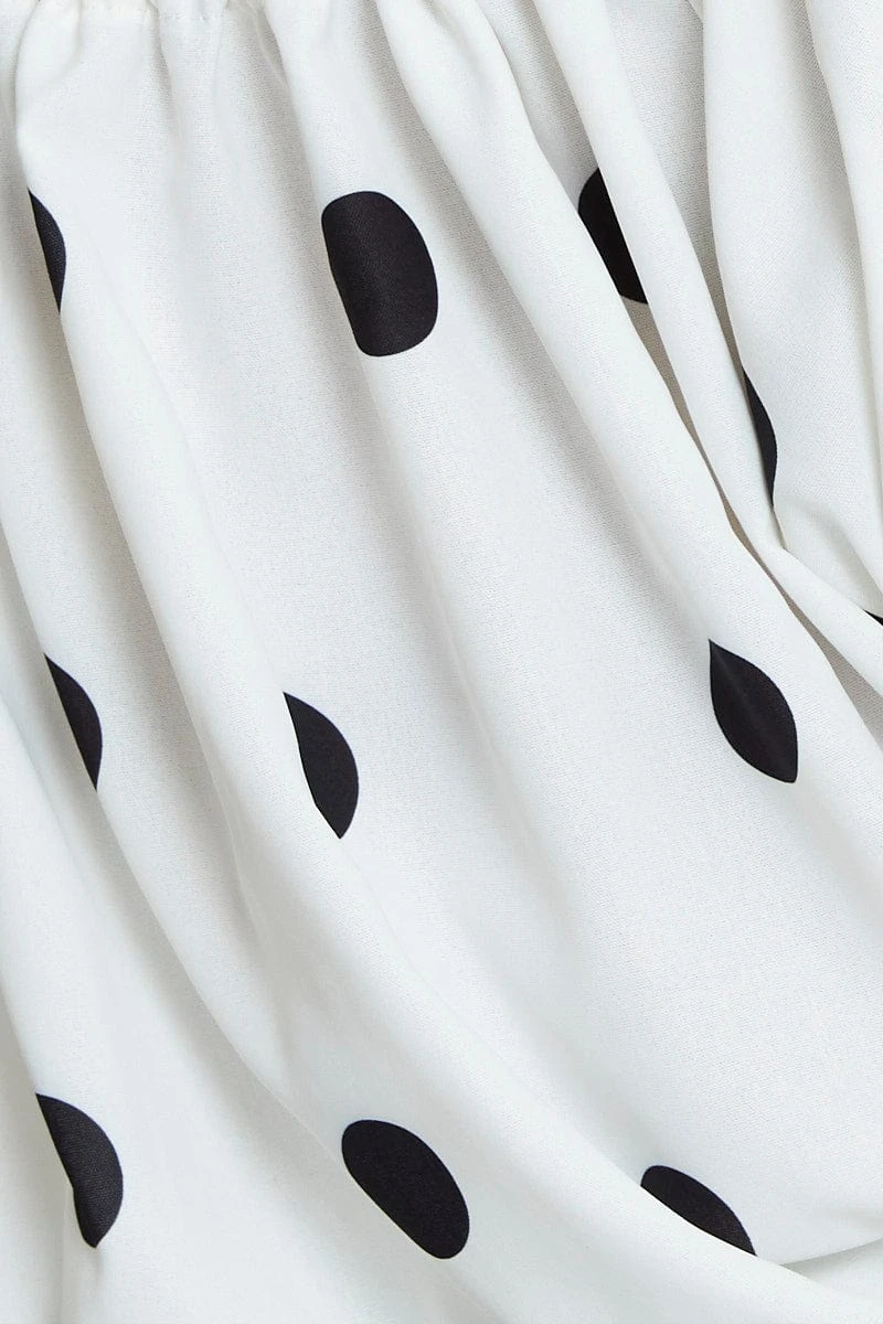 Features: Polka Dot Print, Drawstring Detail, Short Sleeves, Tie Detail