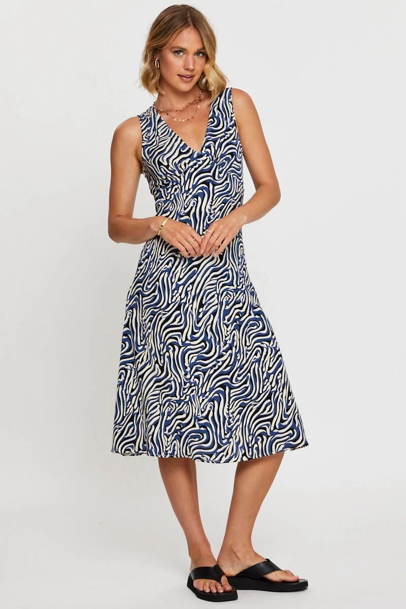 Features: Zebra Print, Midi Length, Side Zipper, Bust Detail