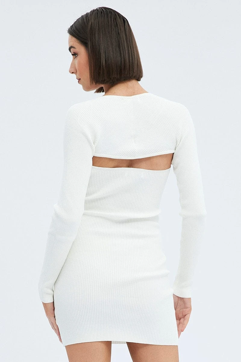 White Dress & Shrug Set Long Sleeve Strapless Mini Knit
