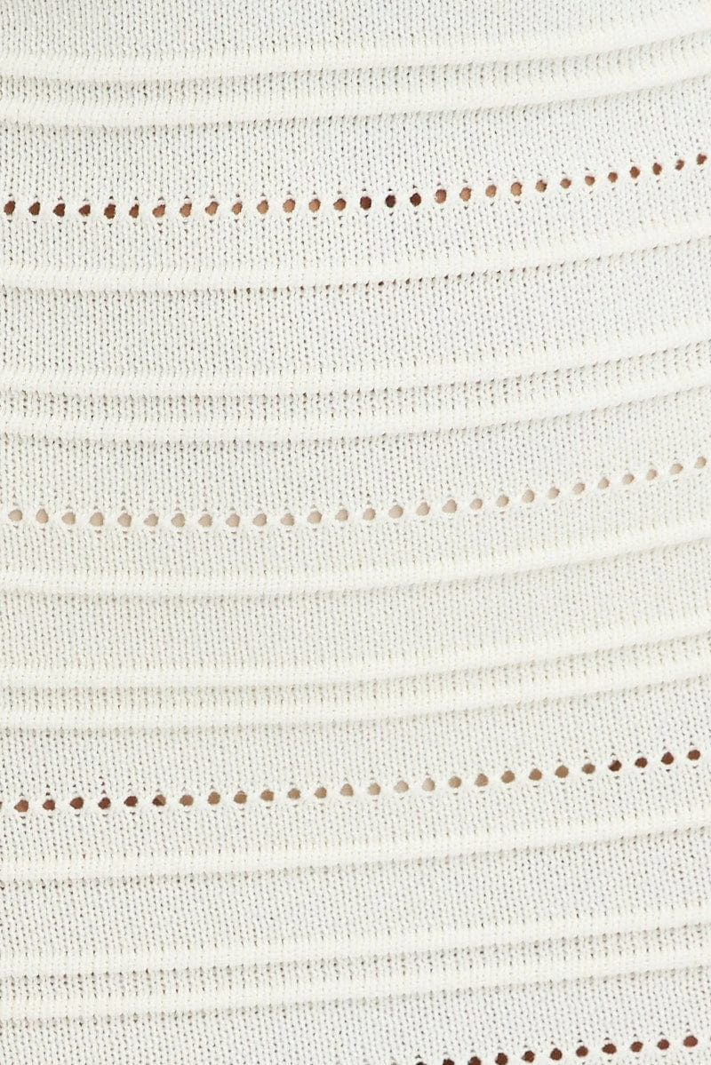 White Knit Dress Twisted Bust Midi